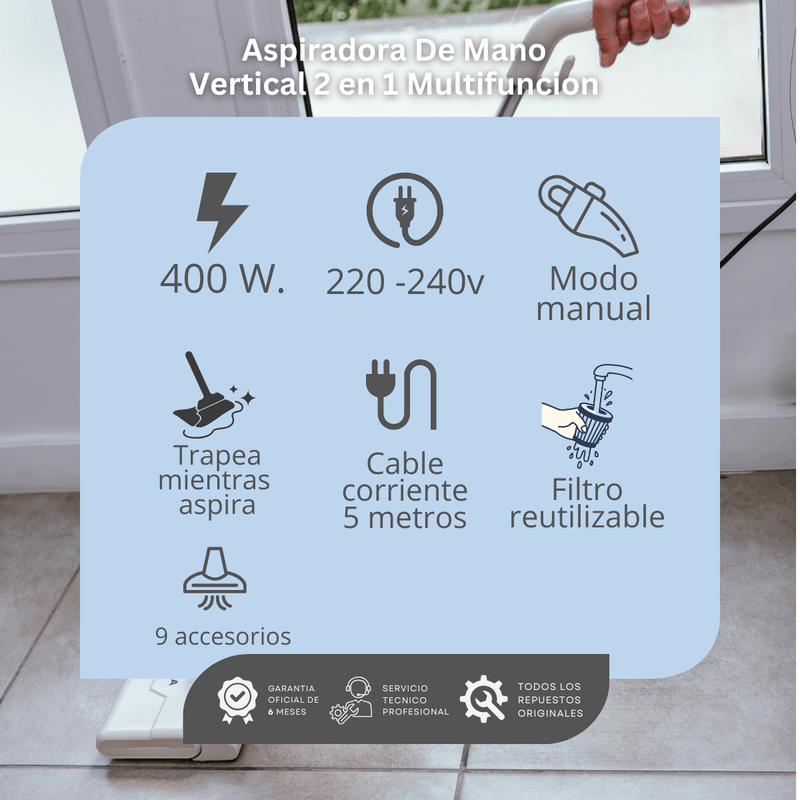 Incluye accesorios para adaptarse a diferentes superficies y necesidades de limpieza.