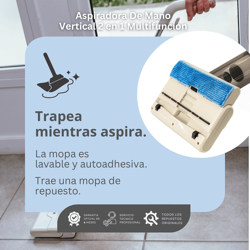 Sistema de mopa húmeda, que limpia y desinfecta mientras aspira.
