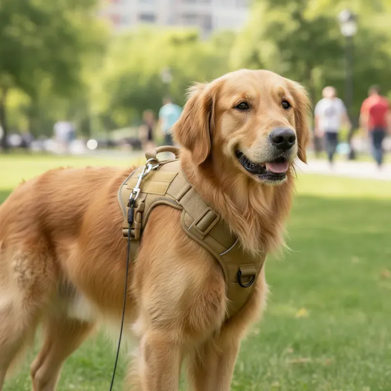 Fabricado con materiales resistentes y suaves, garantiza durabilidad y comodidad, incluso en perros activos. Sus hebillas de cierre rápido y su ajuste regulable permiten adaptarlo fácilmente al cuerpo del perro, ofreciendo libertad de movimiento y seguridad al mismo tiempo.