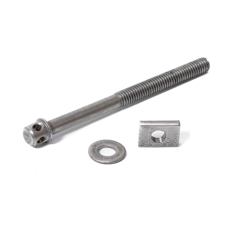 Datos técnicos: Material: Acero bajo carbono. Terminación: zincado blanco (plateado). Paso: uss. Diámetro: 8Mm Largo: 120Mm Rosca: parcial. Sistema de apriete: llave hexagonal o tubo. La medida del tornillo es con la cabeza incluida. Contiene tuerca y arandela.
