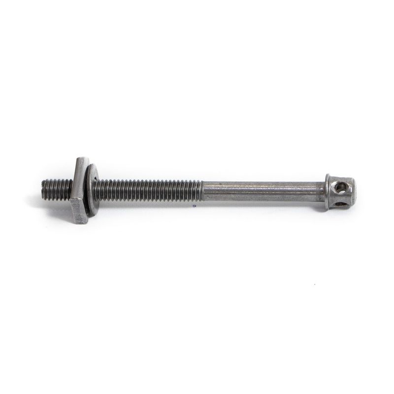 Datos técnicos: Material: Acero bajo carbono. Terminación: zincado blanco (plateado). Paso: uss. Diámetro: 8Mm Largo: 90Mm Rosca: parcial. Sistema de apriete: llave hexagonal o tubo. La medida del tornillo es con la cabeza incluida. Contiene tuerca y arandela.