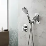 2. Potente presión de agua: El cabezal de ducha proporciona un flujo de agua a alta presión y una mejor experiencia de ducha, incluso en áreas con baja presión de agua, lo que es perfecto para edificios de gran altura.