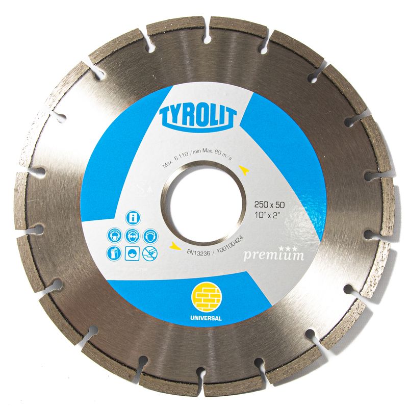 TYROLIT PREMIUM es la línea de discos diamantados de corte en seco con segmentos soldados láser y una banda diamantada de 7 mm de altura. Ofrece un amplio surtido de productos para utilizar en amoladora angular o máquinas estacionarias.