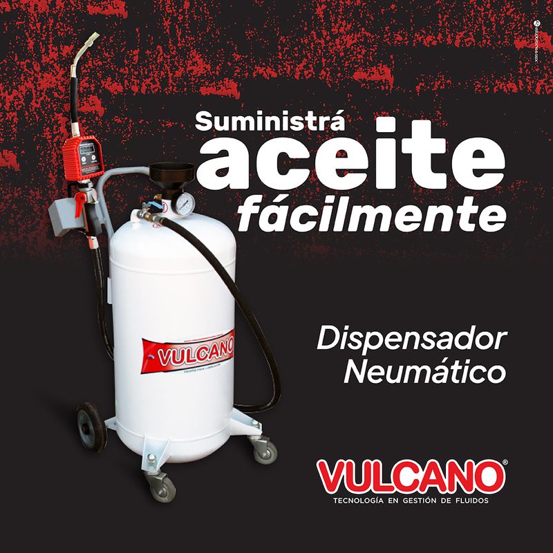 Los dispensadores cargados con aceite se presurizan con aire comprimido a través de la válvula de inflar hasta los 5 kg /cm², lo cuál le permite el vaciado del mismo con un caudal de 6 litros/minutos (a la presión antes mencionada).