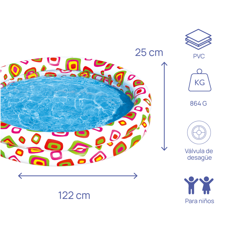Hogar y JardinRiego y PiletaPiletasPileta Inflable Kids 2 Anillos 122 x 25 Cm. 158 Litros