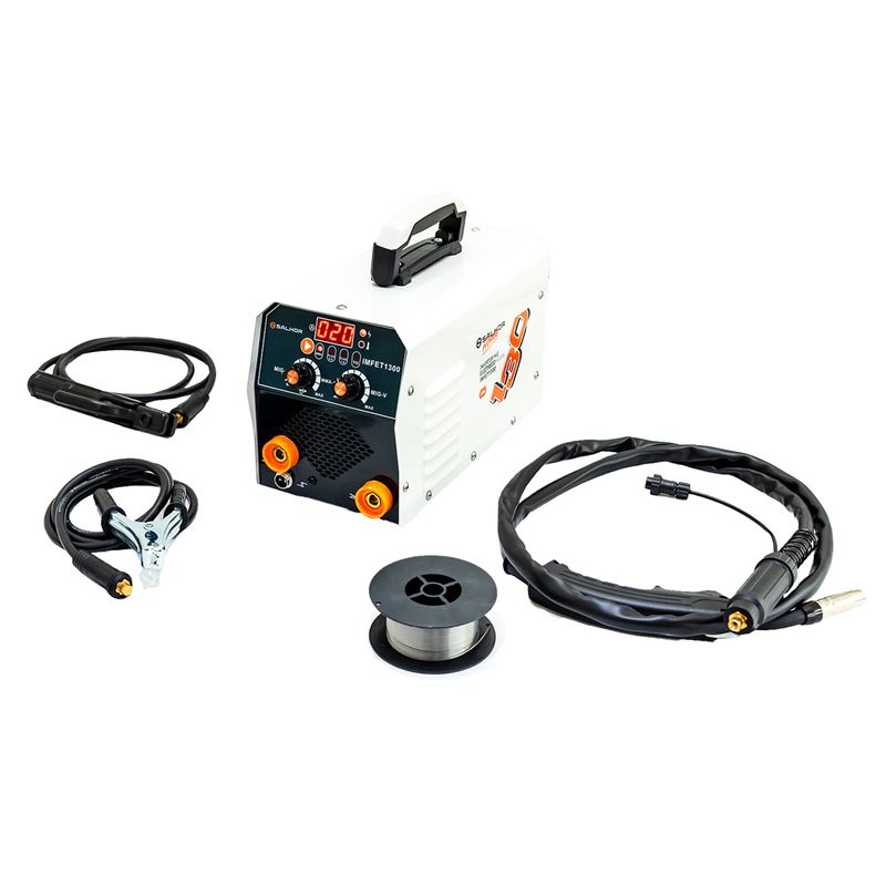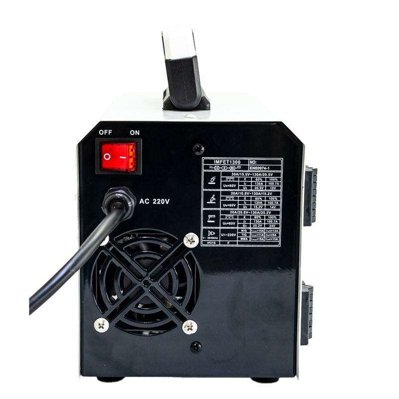 Versátil y compacta, esta soldadora de 130 Amp permite trabajar con procesos de soldadura por electrodo revestido (MMA), MIG sin gas (Flux Core) y TIG, ideal para trabajos de herrería, mantenimiento y proyectos.